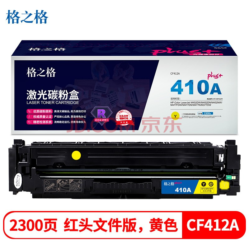 >格之格 NT-CHF412FYplus+ 红头文件版 通用硒鼓粉盒 黄色硒鼓 CF412A 适用于HP