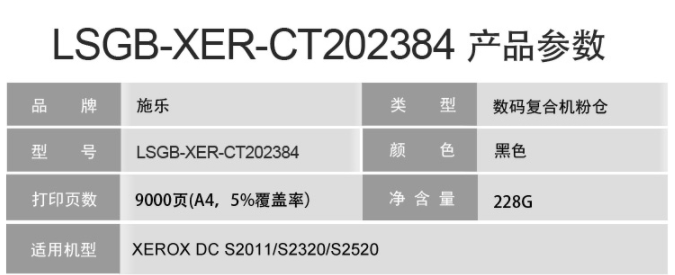 硒鼓粉盒>莱盛 粉盒 LSGB-XER-CT202384 数码复合机粉仓墨粉盒 适用于 XEROX DC S2011/S2320/S2520