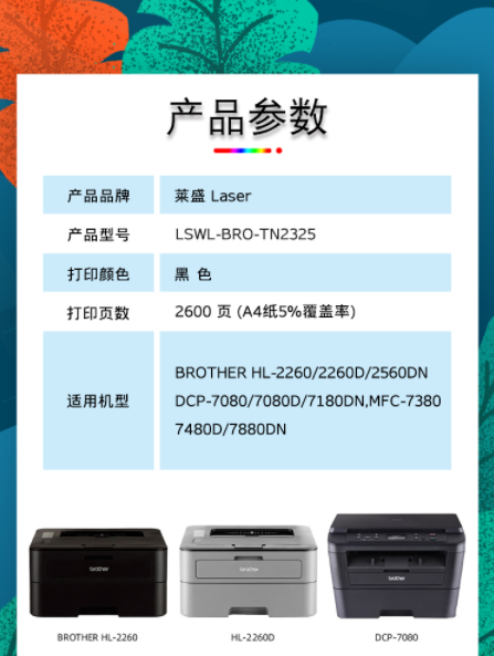 硒鼓粉盒>莱盛 粉盒 TN2325 通用墨粉盒 适用兄弟HL2260 2260D 2560DN MFC7380 7480D 7880DN