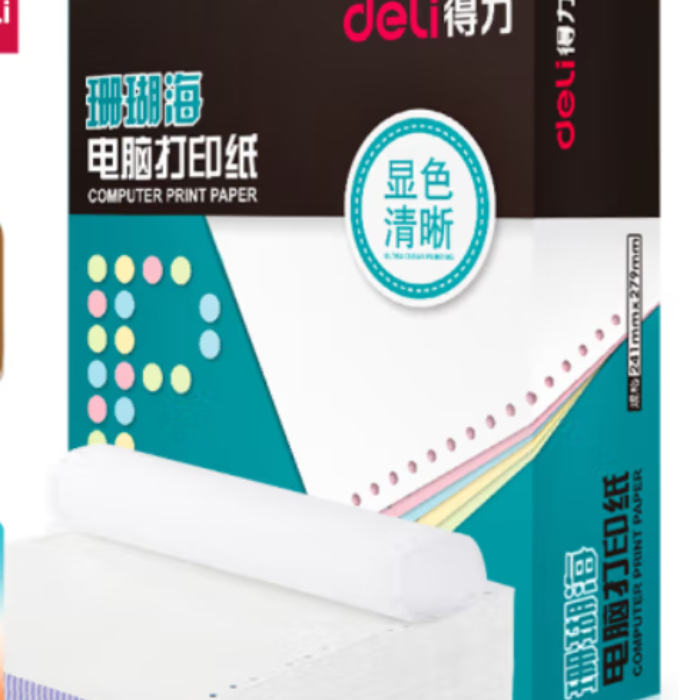得力241-2标签打印纸条码纸 一联二等分可撕边电脑打印纸彩色针式一联打印纸241-2全白