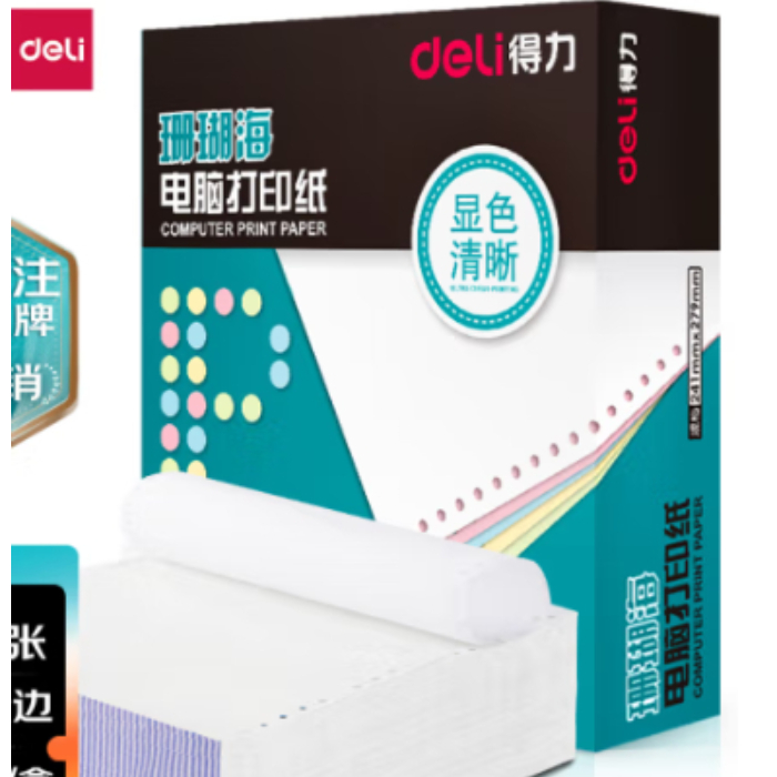 >得力241-1复写纸 一联二等分可撕边电脑打印纸彩色针式一联打印纸241-1全白